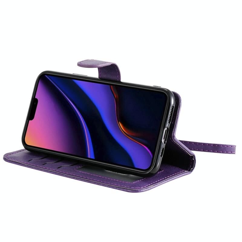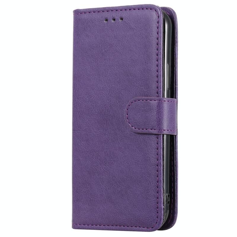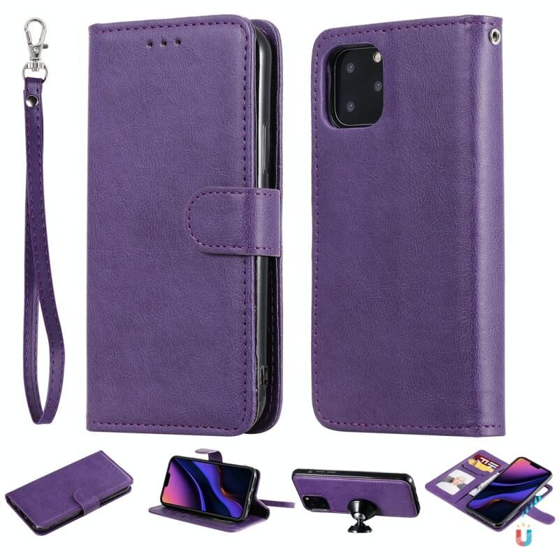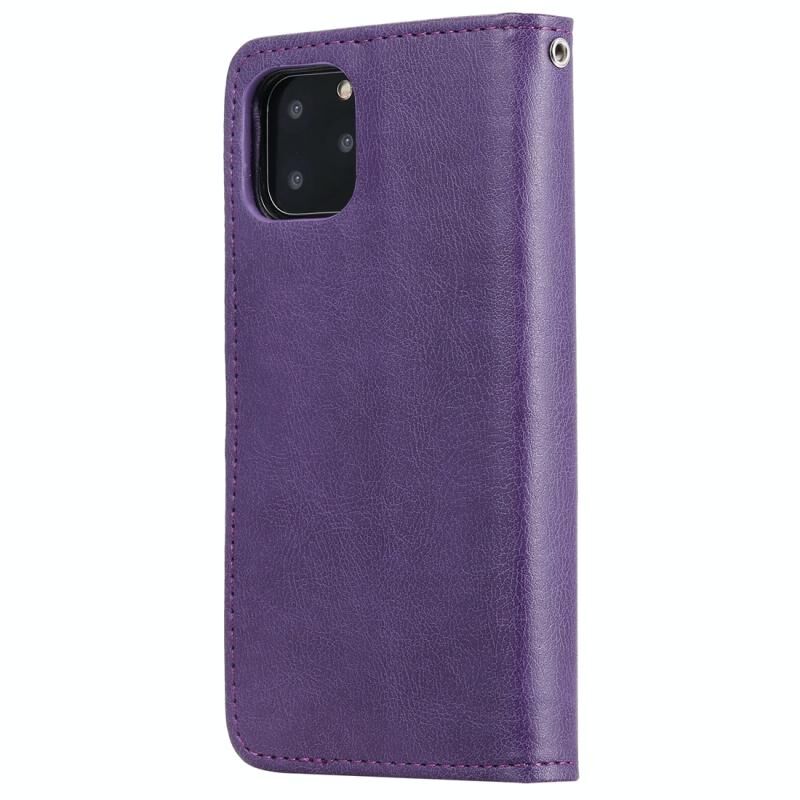 For iPhone 11 Pro Solid Color Horizontal Flip Protective Case with Holder & Card Slots & Wallet & Photo Frame & Lanyard(Purple)