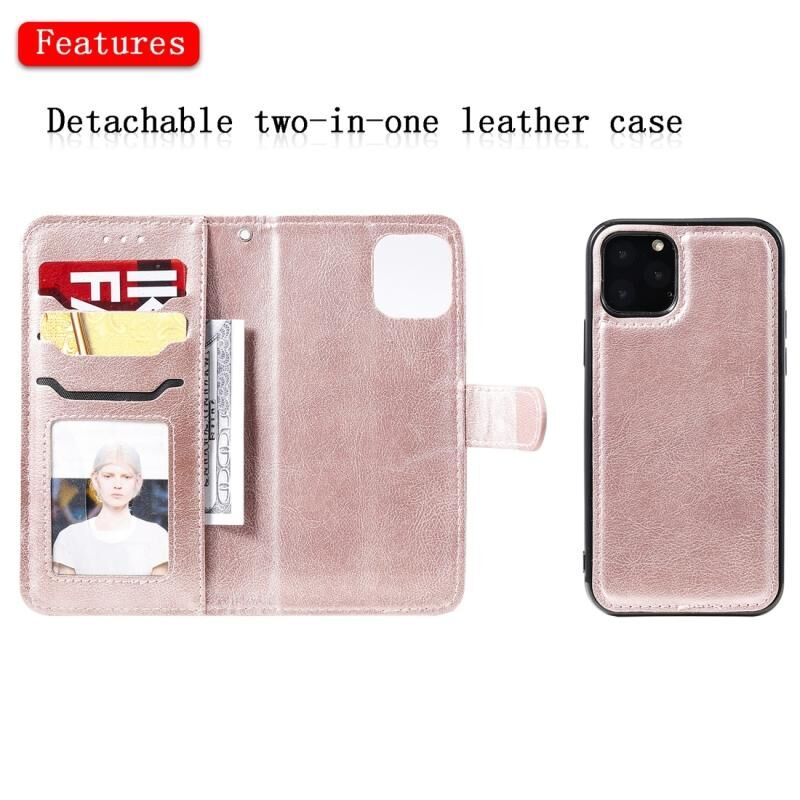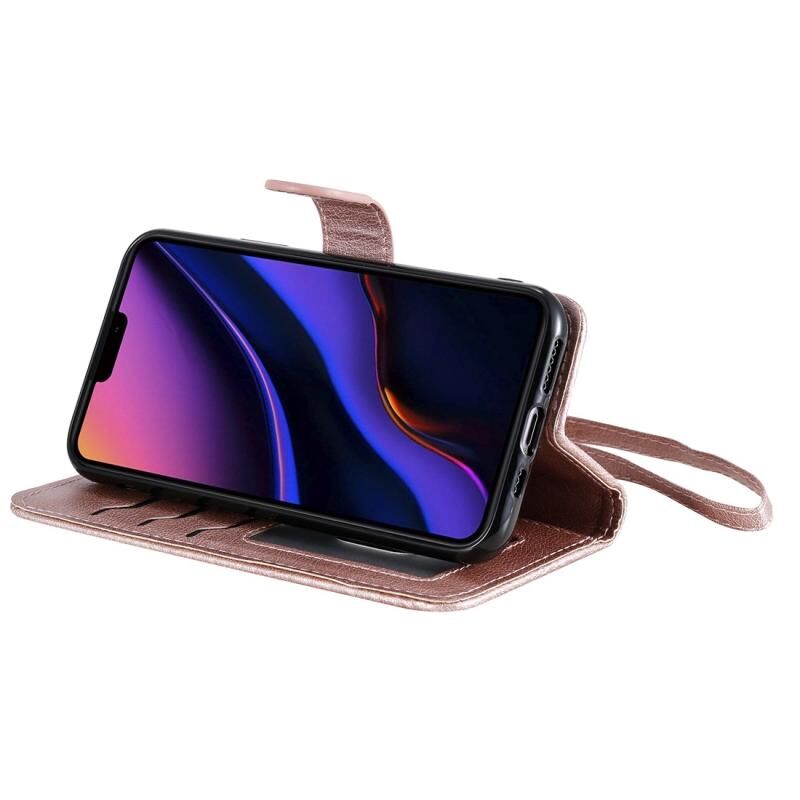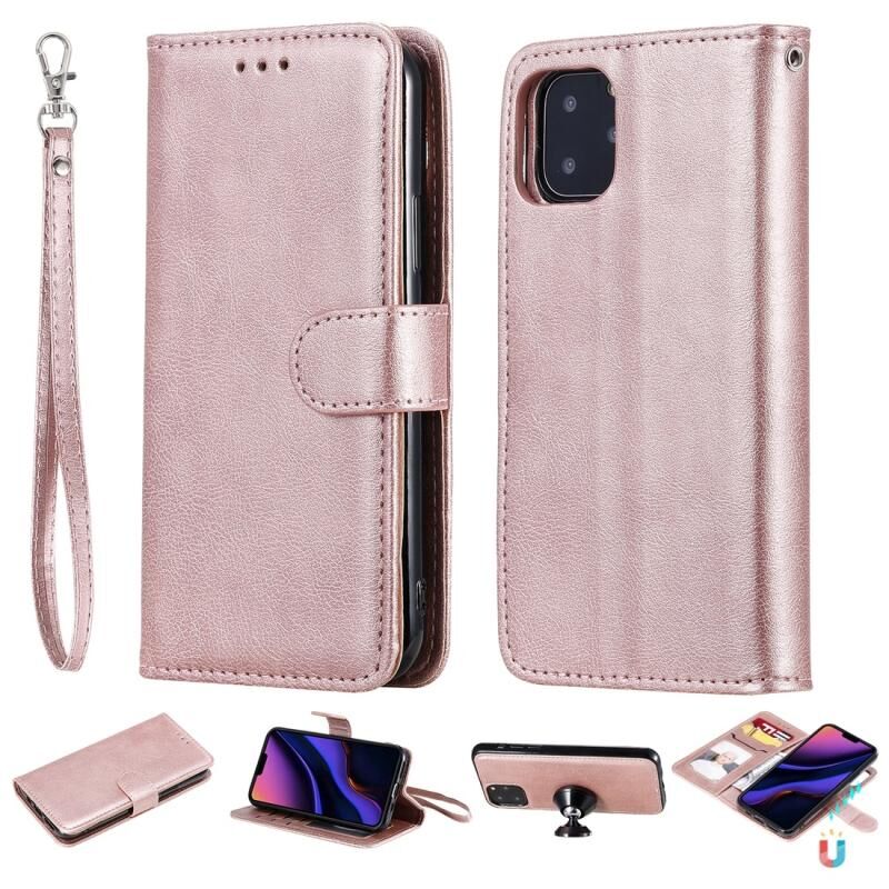 For iPhone 11 Pro Solid Color Horizontal Flip Protective Case with Holder & Card Slots & Wallet & Photo Frame & Lanyard(Rose Gold)