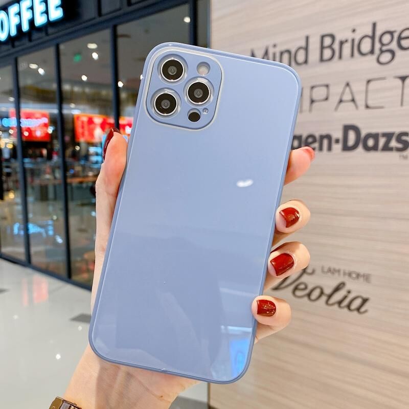 Θήκη τηλεφώνου από σκληρυμένο γυαλί για iPhone 11 Pro σε μονόχρωμο ροζ.