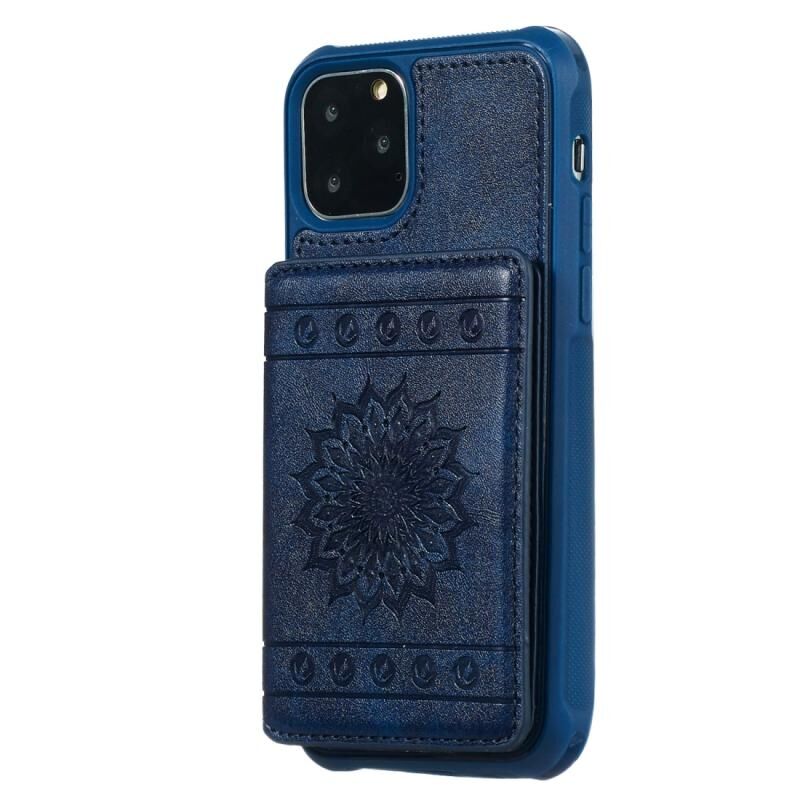 For iPhone 11 Pro Sunflower Embossing Pattern PU + TPU Case with Holder & Card Slots & Photo Frame & Lanyard(Blue)