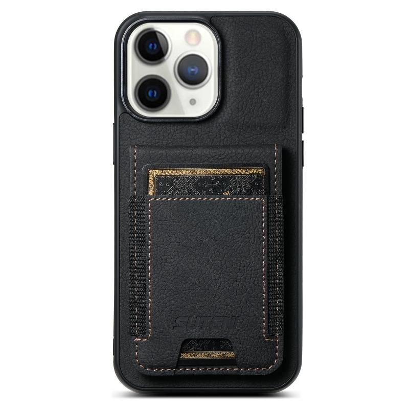 For iPhone 11 Pro Suteni H03 Litchi Leather Card Bag Stand Back Phone Case(Black) (Suteni)