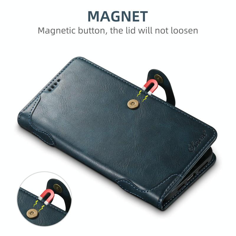 1. Υλικό: Κατασκευασμένο από υψηλής ποιότητας δερματίνη PU, ανθεκτικό TPU και μια εξελιγμένη μεταλλική μαγνητική αγκράφα.