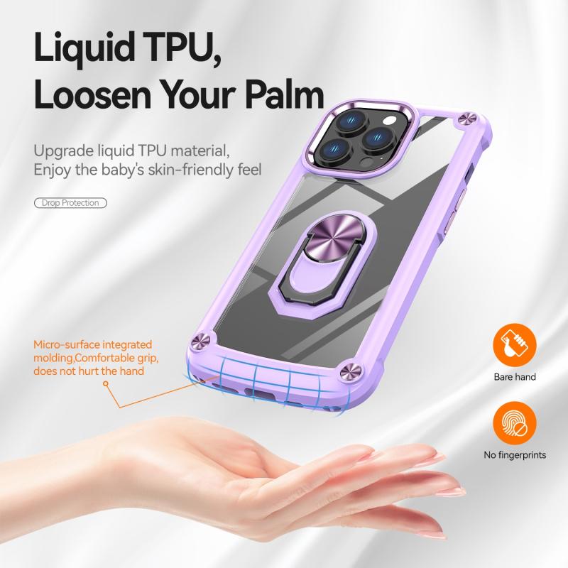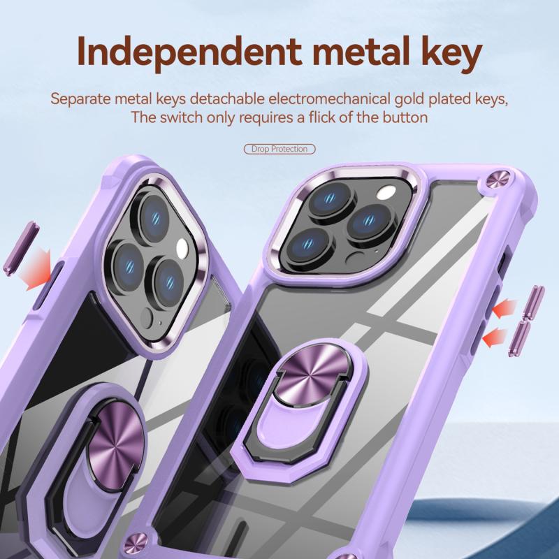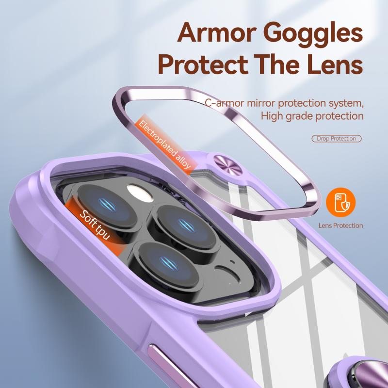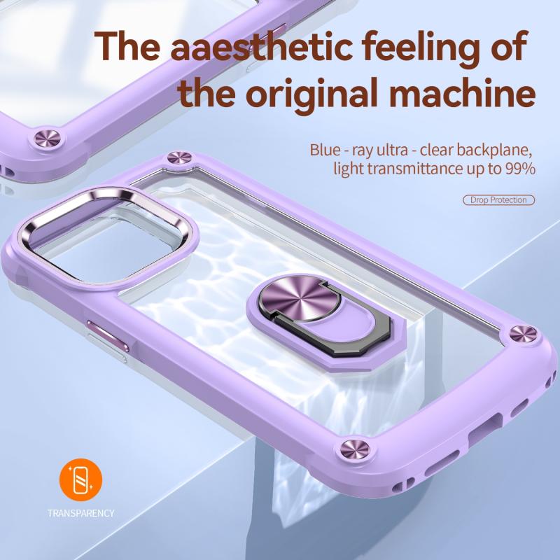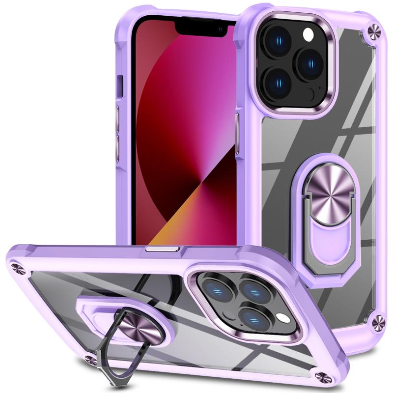 For iPhone 11 Pro TPU + PC Lens Protection Phone Case with Ring Holder(Purple)