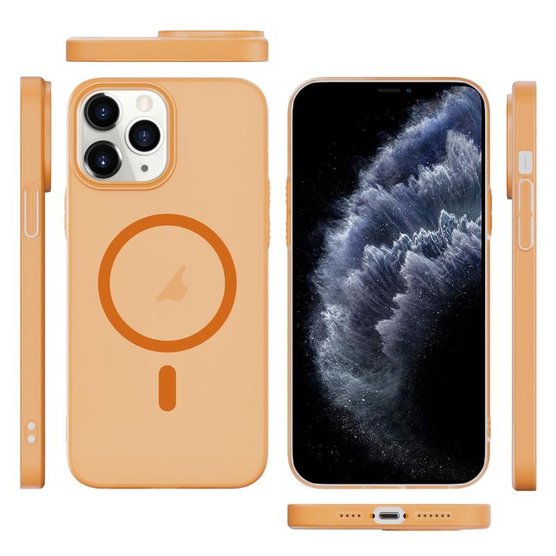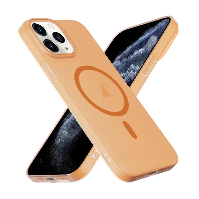 For iPhone 11 Pro Translucent Frosted Skin PC MagSafe Phone Case(Orange)