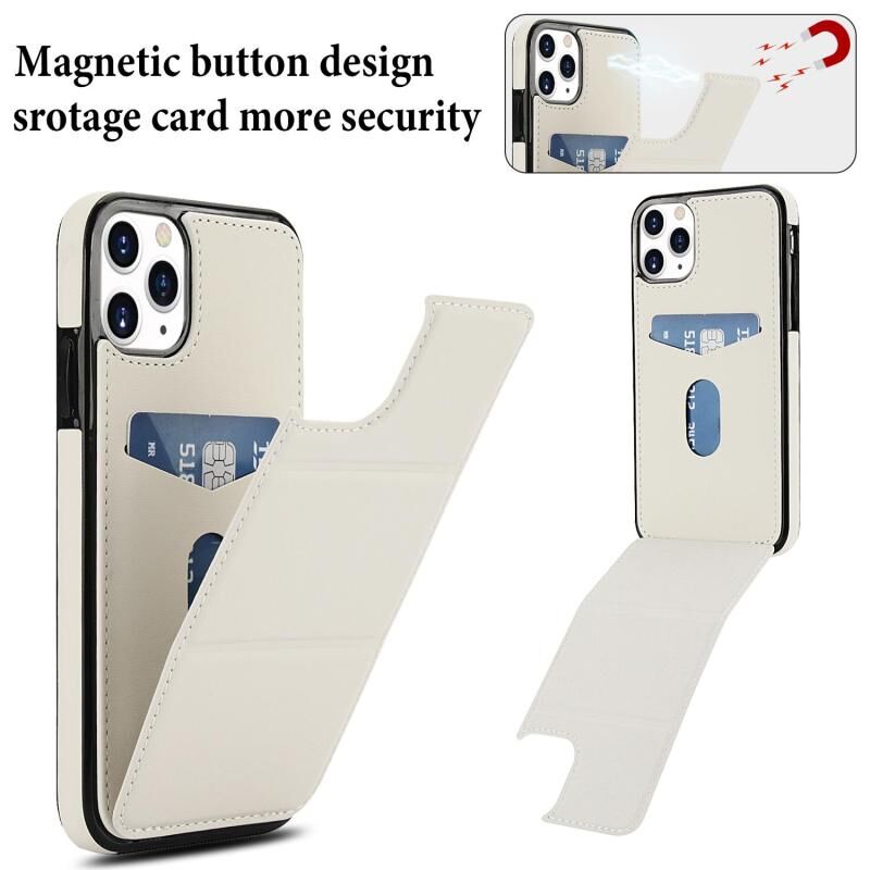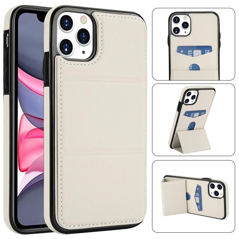 For iPhone 11 Pro Tri-fold Holder Leather Phone Case with Card Slot(White)