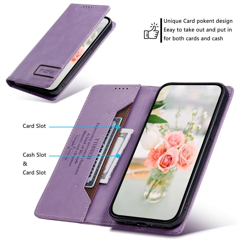 For iPhone 11 Pro TTUDRCH RFID Retro Texture Magnetic Leather Phone Case(Purple)