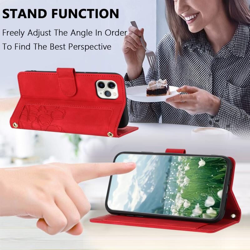 For iPhone 11 Pro Tulips Embossed Leather Phone Case with Lanyard(Red)