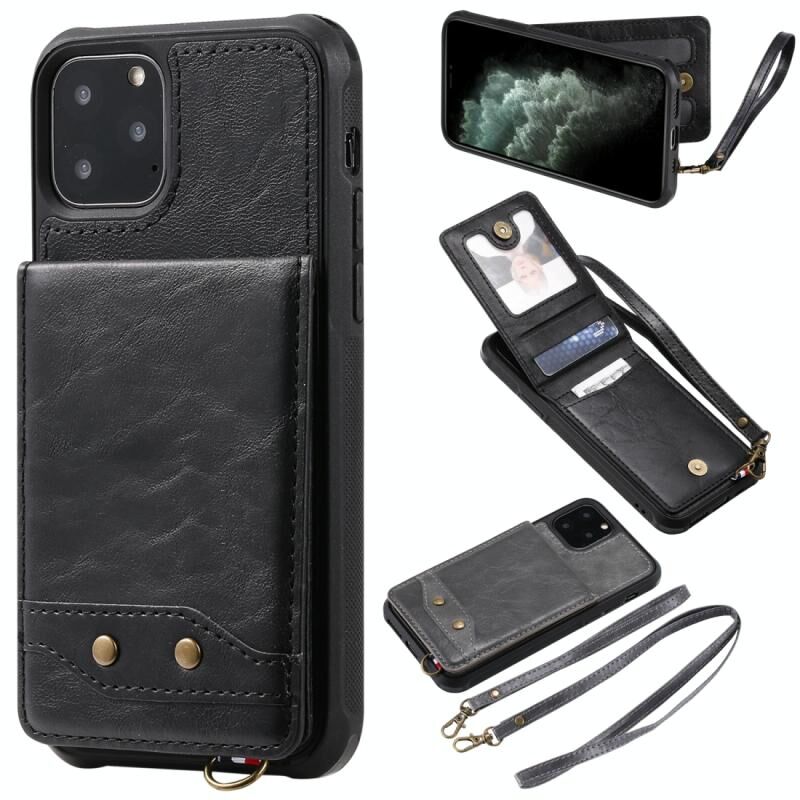 For iPhone 11 Pro Vertical Flip Wallet Shockproof Back Cover Protective Case with Holder & Card Slots & Lanyard & Photos Frames(Black)