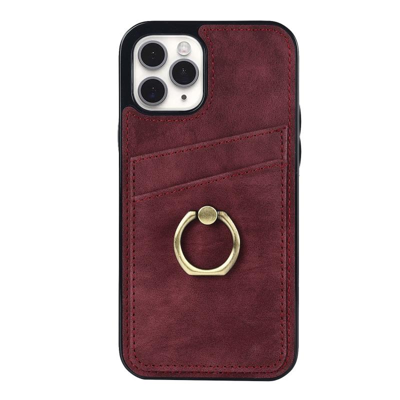 For iPhone 11 Pro Vintage Patch Leather Phone Case with Ring Holder (Red)