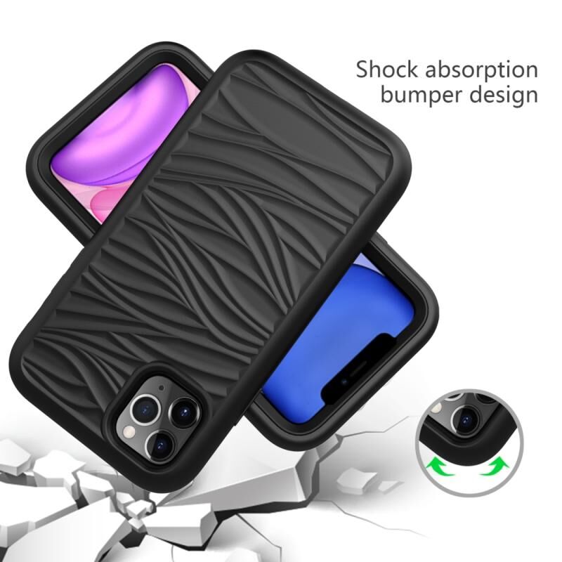 Θήκη Προστασίας 3 σε 1 από Σιλικόνη+PC Αντικραδασμική για iPhone 11 Pro με Σχέδιο Κυμάτων (Μαύρο)