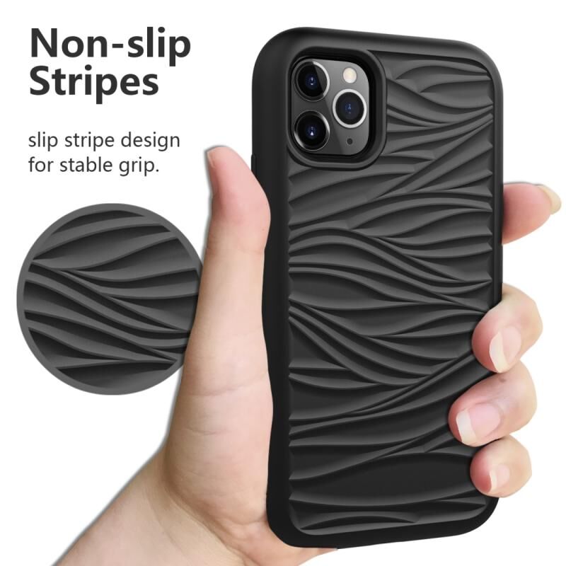 Θήκη Προστασίας 3 σε 1 από Σιλικόνη+PC Αντικραδασμική για iPhone 11 Pro με Σχέδιο Κυμάτων (Μαύρο)