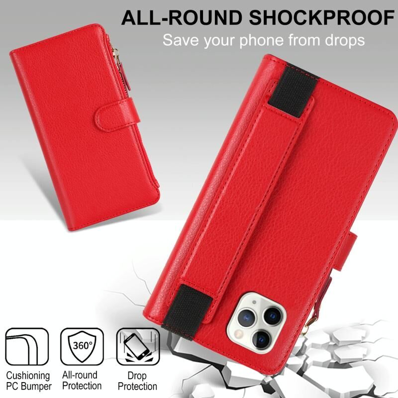 Θήκη για iPhone 11 Pro με Βραχιόλι, Πορτοφόλι με Φερμουάρ, Δέρμα με Προστασία RFID (Καφέ)