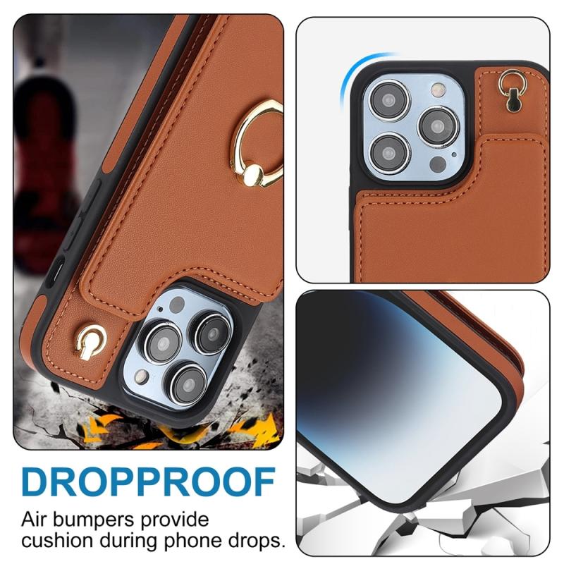For iPhone 11 Pro YM005 Skin Feel Card Bag Phone Case with Long Lanyard(Brown)