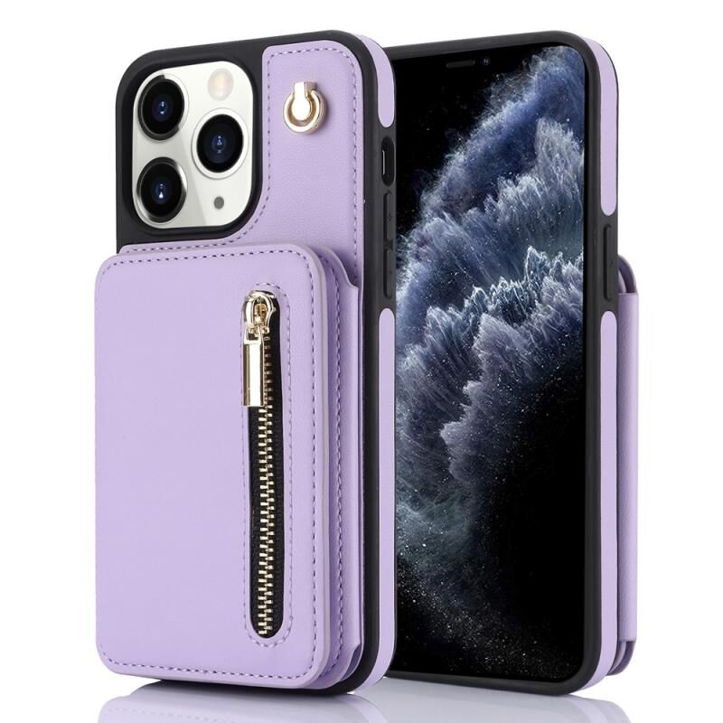 Θήκη κινητού τηλεφώνου με υφή δέρματος και φερμουάρ για iPhone 11 Pro YM006 με διπλό κορδόνι (Μαύρο)