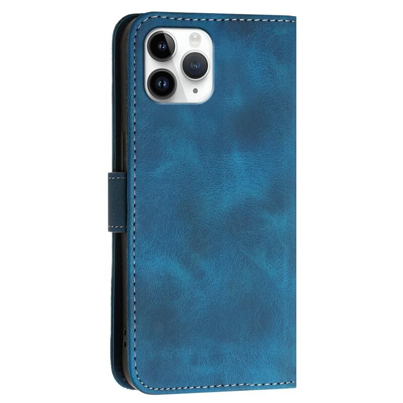 For iPhone 11 Pro YX0080 Grid Butterfly Embossed Pattern Flip Leather Phone Case with Lanyard(Dark Blue)