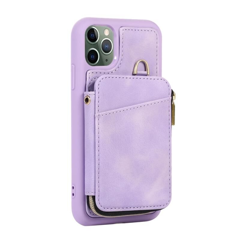 For iPhone 11 Pro Zipper Card Bag Back Cover Phone Case(Purple)