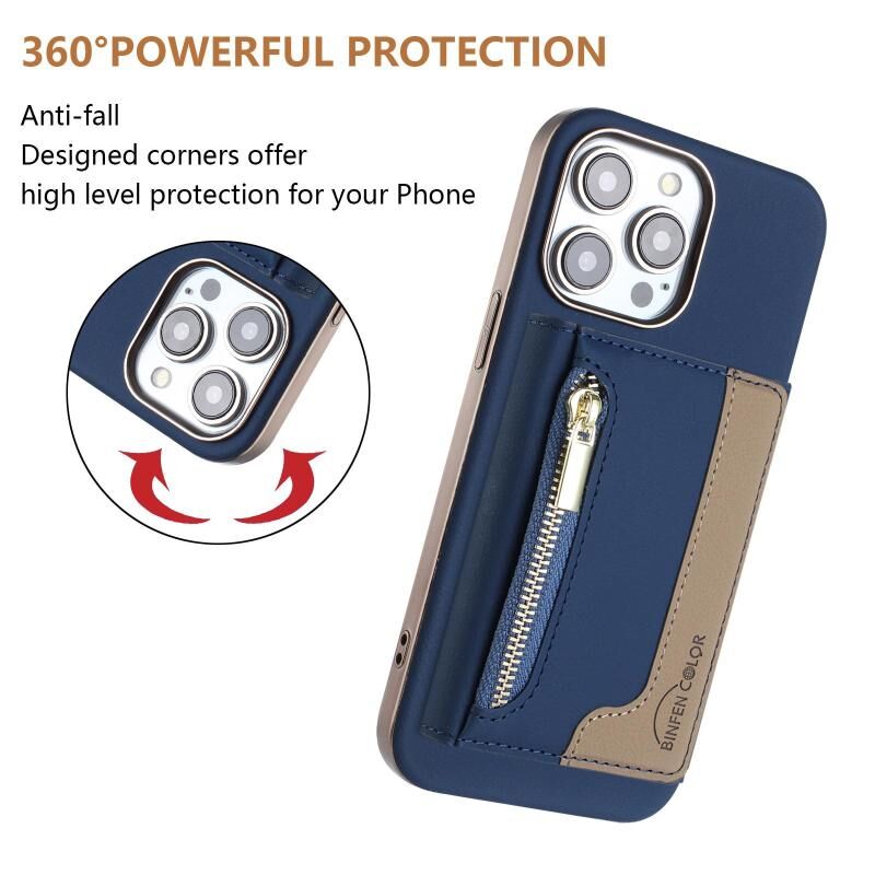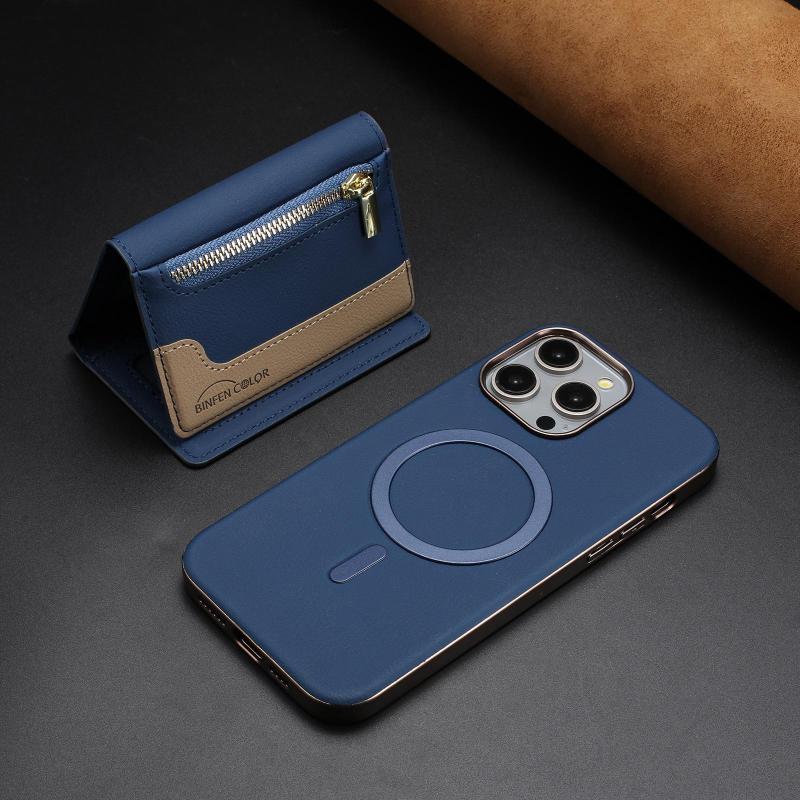 For iPhone 11 Pro Zipper Horizontal Magnetic Card Bag RFID MagSafe Phone Case(Dark Blue)