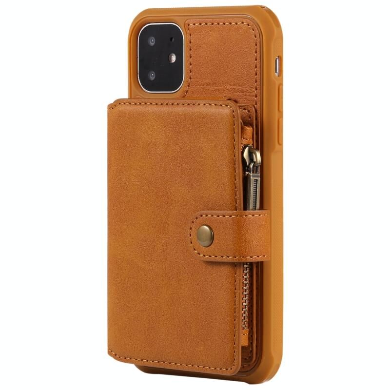 For iPhone 11 Pro Zipper Shockproof Protective Case with Card Slots & Bracket & Photo Holder & Wallet Function(Brown)