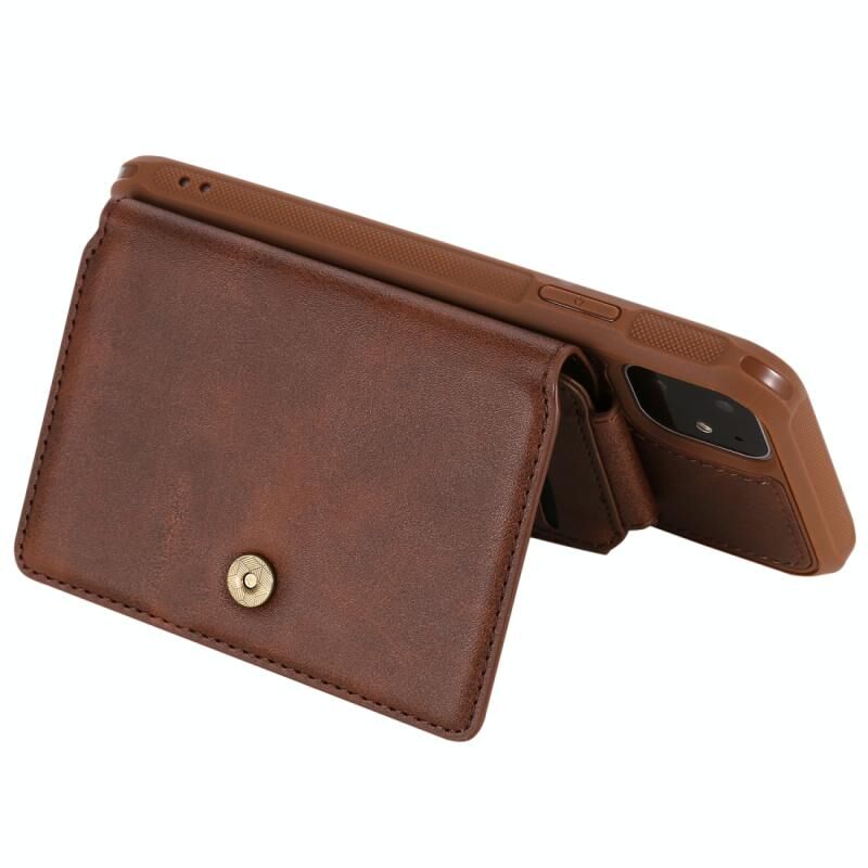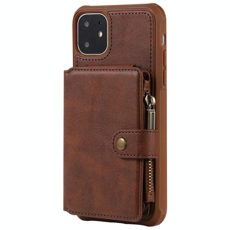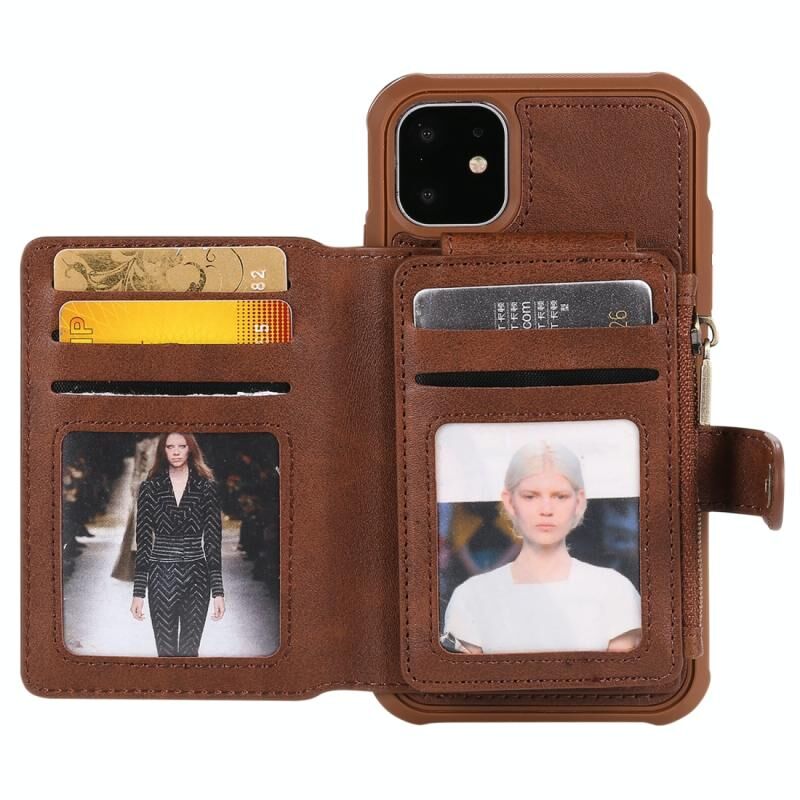For iPhone 11 Pro Zipper Shockproof Protective Case with Card Slots & Bracket & Photo Holder & Wallet Function(Coffee)