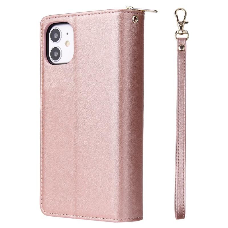 Θήκη για iPhone 11 Pro, οριζόντια, με φερμουάρ, από δερματίνη PU, με θήκη, 9 υποδοχές για κάρτες, πορτοφόλι, κορδόνι και κορνίζα φωτογραφίας (Χρυσό Ρόδινο).