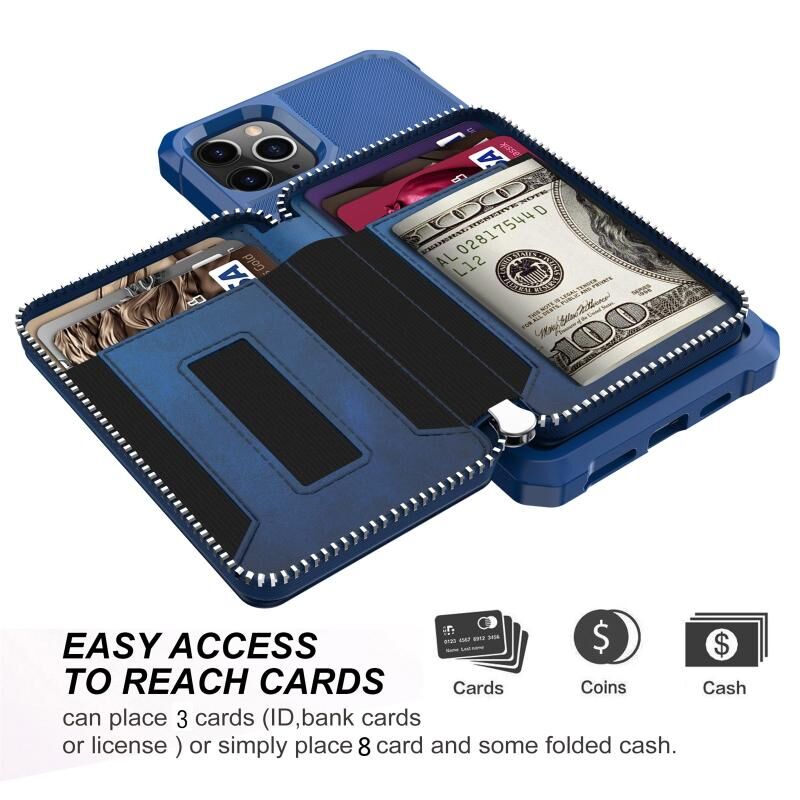 Θήκη για iPhone 11 Pro με φερμουάρ, τσέπη για κάρτες, από PU δέρμα (Μαύρο)