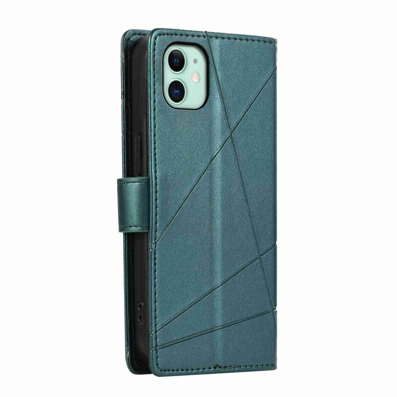 Θήκη τηλεφώνου για iPhone 11 από γνήσιο δέρμα PU με ανάγλυφη υφή και λεπτομέρεια γραμμής (Μαύρο)
