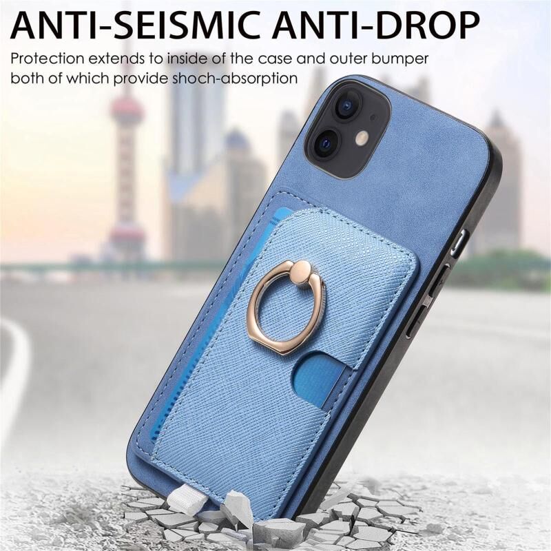 For iPhone 11 Retro Cross Leather Ring Side Insert Card Bag MagSafe Phone Case(Blue)