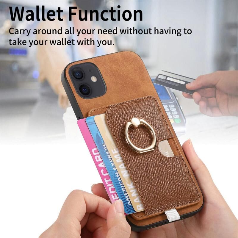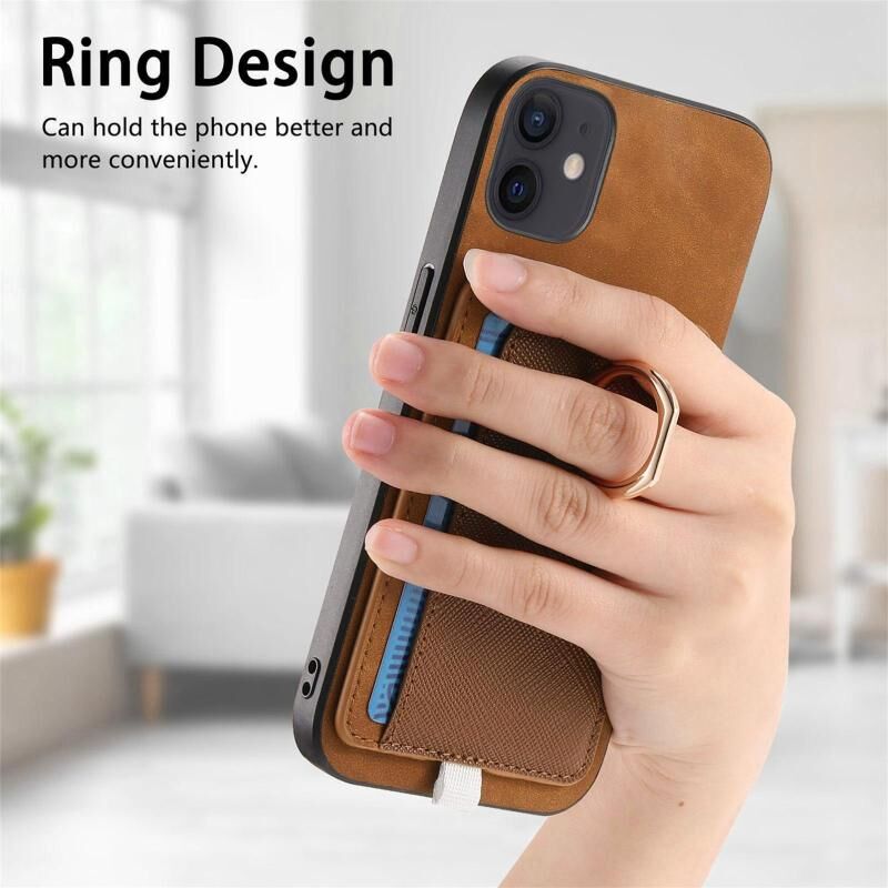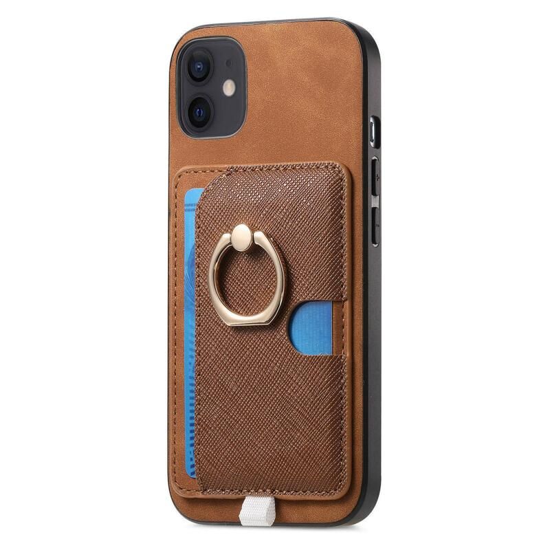 For iPhone 11 Retro Cross Leather Ring Side Insert Card Bag MagSafe Phone Case(Brown)