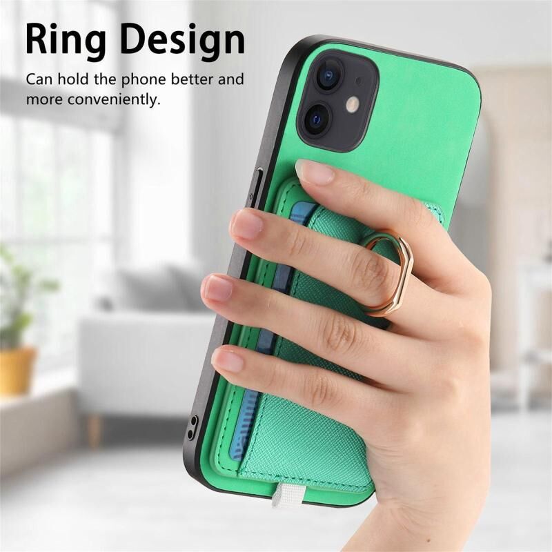 For iPhone 11 Retro Cross Leather Ring Side Insert Card Bag MagSafe Phone Case(Green)