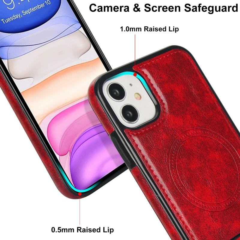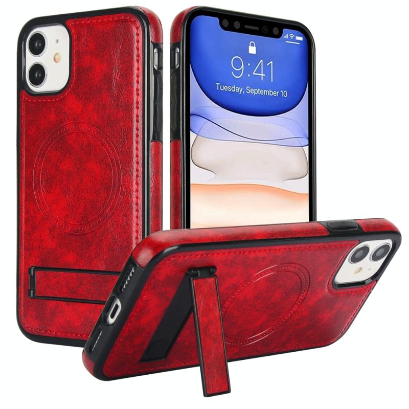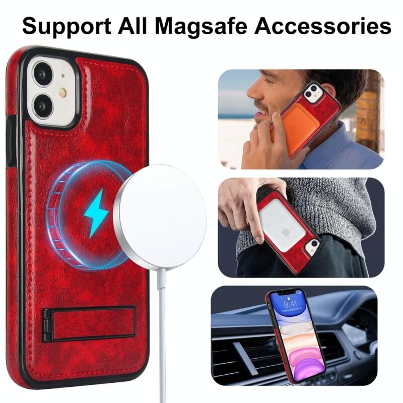 Θήκη iPhone 11 Retro Leather με MagSafe & Στήριξη (Κόκκινο)