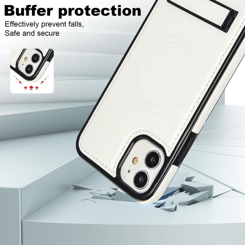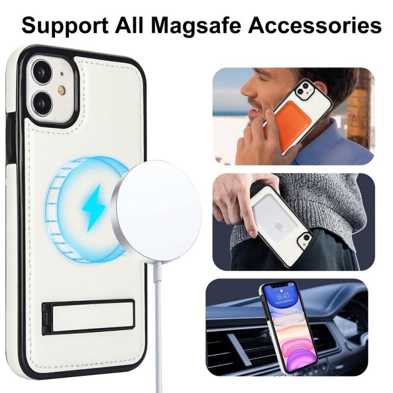 For iPhone 11 Retro Leather Invisible Stand MagSafe Phone Case(White)
