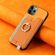 For iPhone 11 Retro Magsafe Cross Leather Ring Holder Card Bag Phone Case(Yellow)
