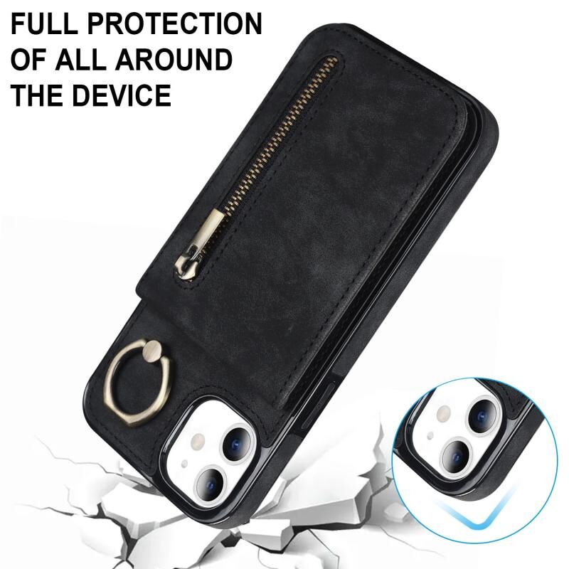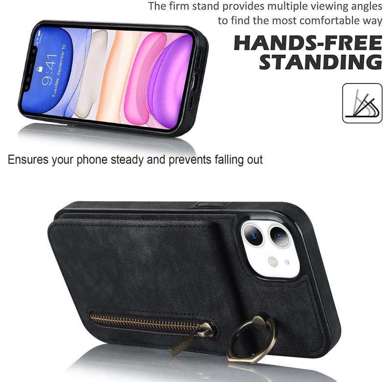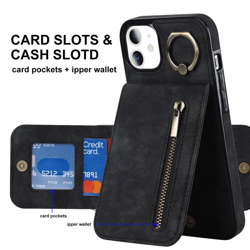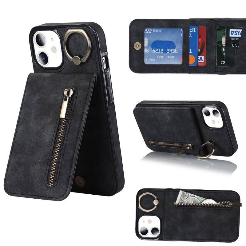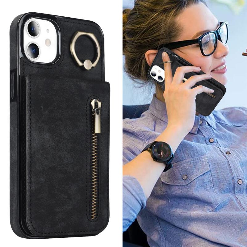 For iPhone 11 Retro Ring and Zipper RFID Card Slot Phone Case(Black)