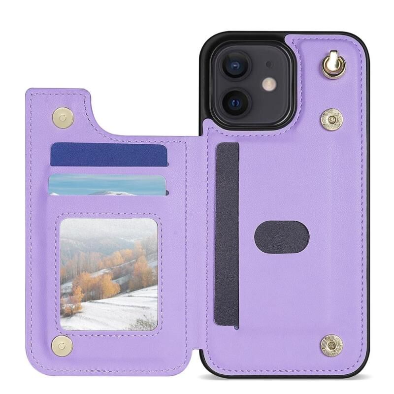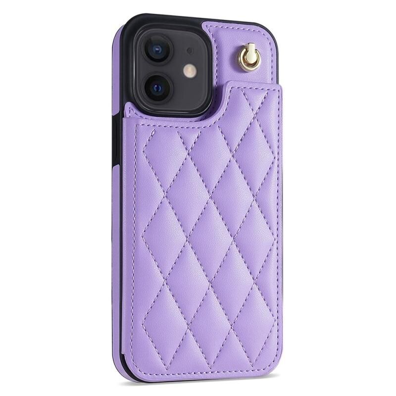 For iPhone 11 Rhombic Dual Buckle Card Slots Phone Case with Lanyard(Purple)
