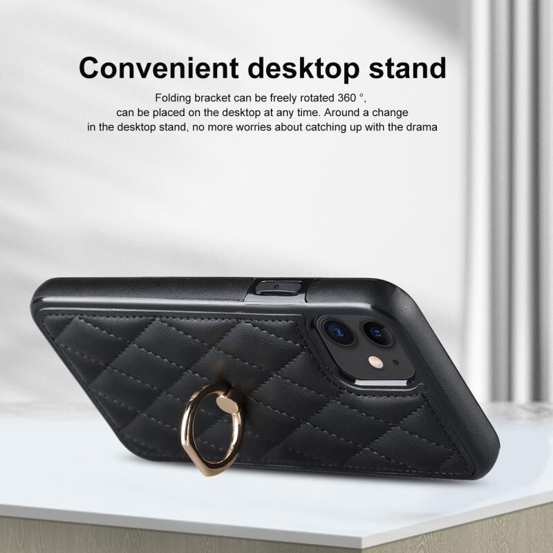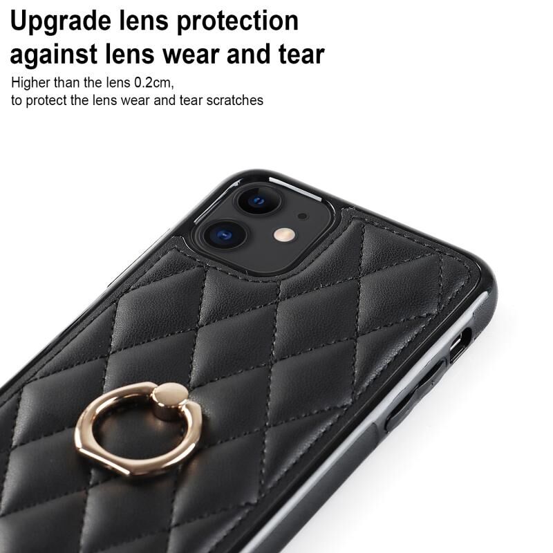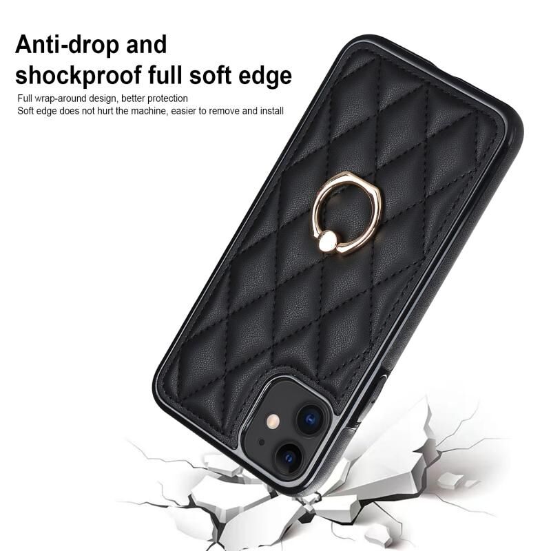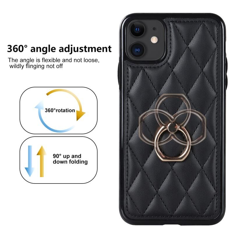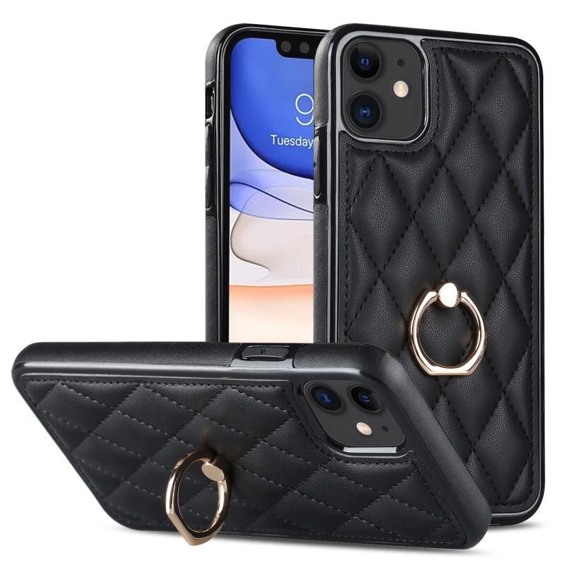 For iPhone 11 Rhombic PU Leather Phone Case with Ring Holder(Black)