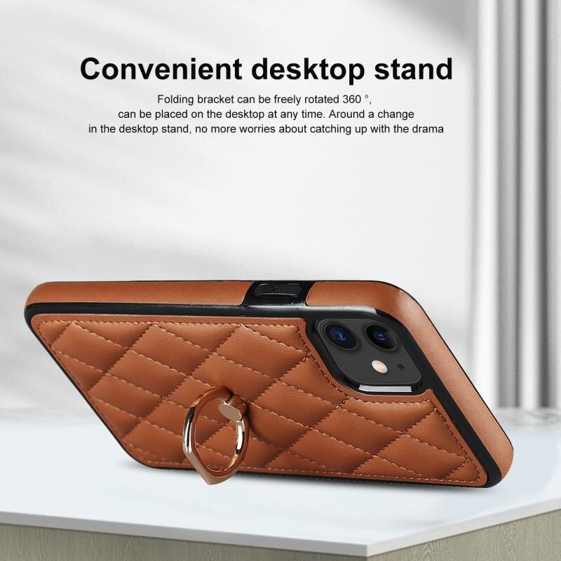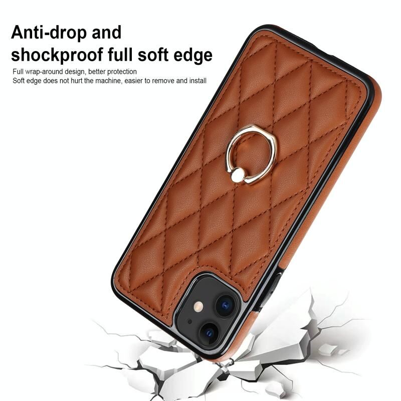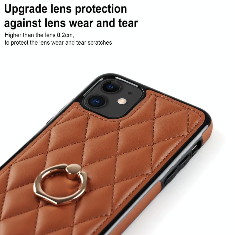 For iPhone 11 Rhombic PU Leather Phone Case with Ring Holder(Brown)