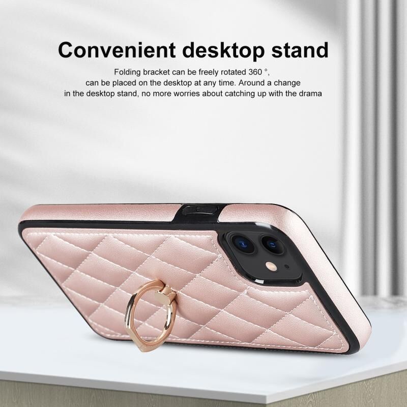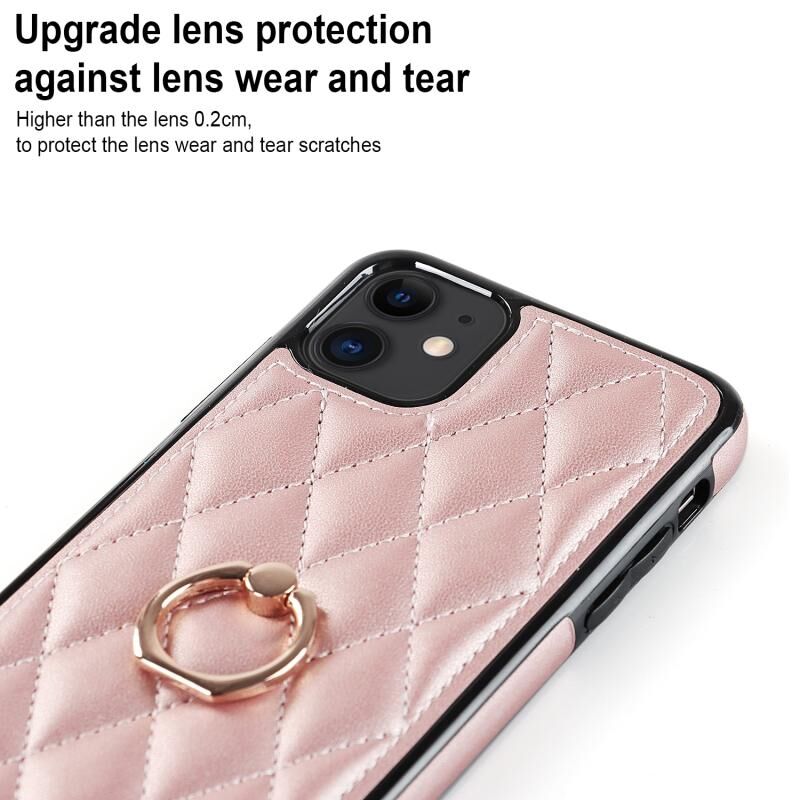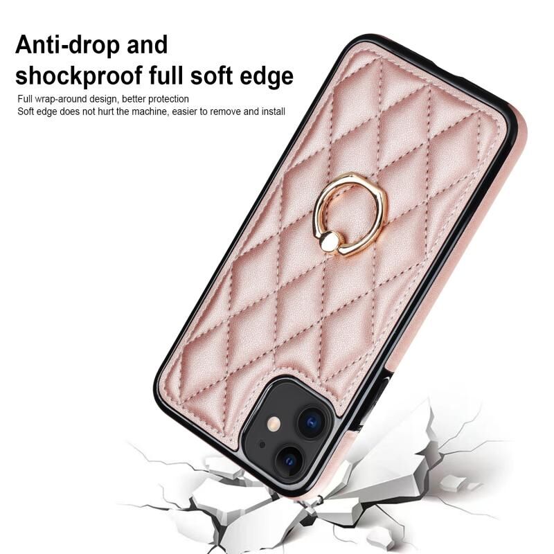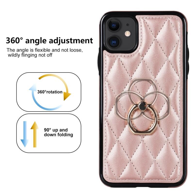 For iPhone 11 Rhombic PU Leather Phone Case with Ring Holder(Rose Gold)