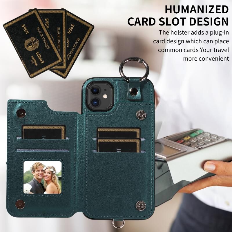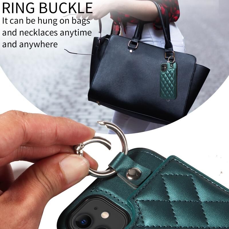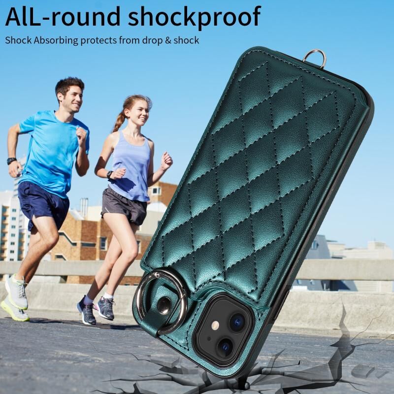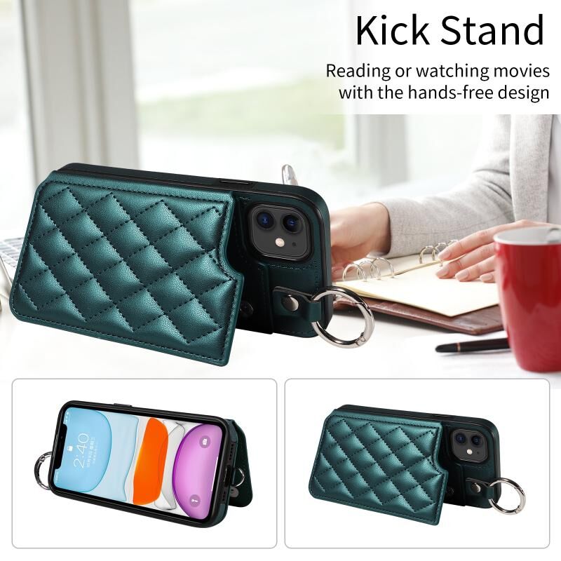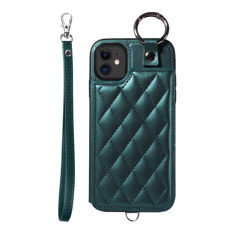 For iPhone 11 Rhombic Texture Card Bag Phone Case with Short Lanyard(Green)