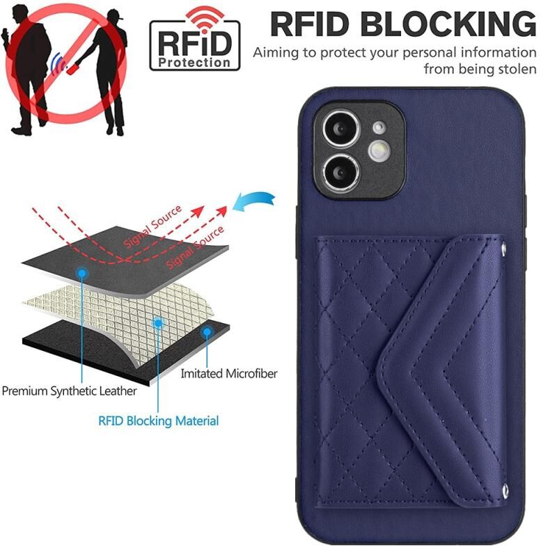 For iPhone 11 Rhombic Texture Card Bag RFID Phone Case with Long Lanyard(Blue)