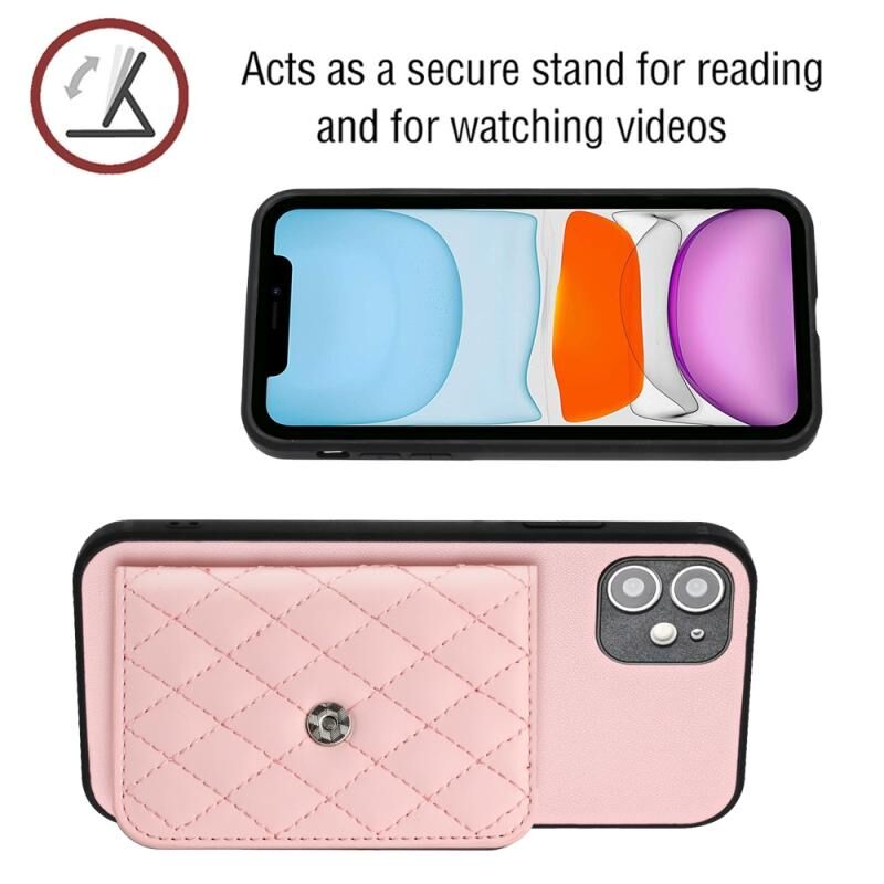 For iPhone 11 Rhombic Texture Card Bag RFID Phone Case with Long Lanyard(Rose Gold)