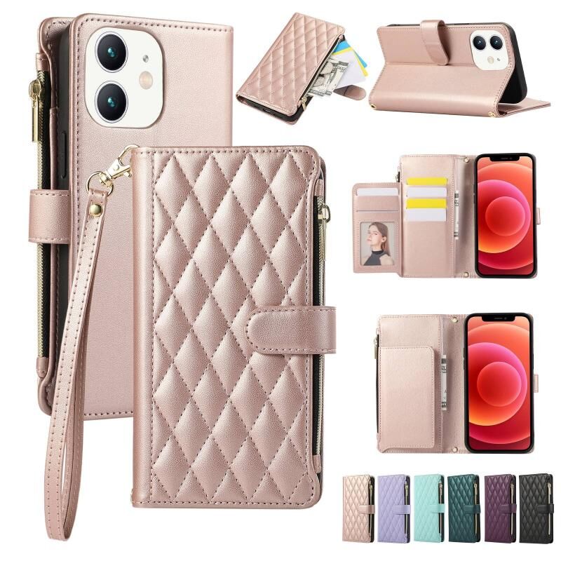 For iPhone 11 Rhombic Zipper Wallet Leather Phone Case(Rose Gold)