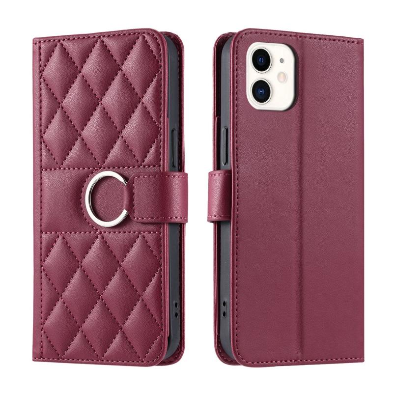 For iPhone 11 Ring Buckle Rhombic Leather Phone Case(Red)