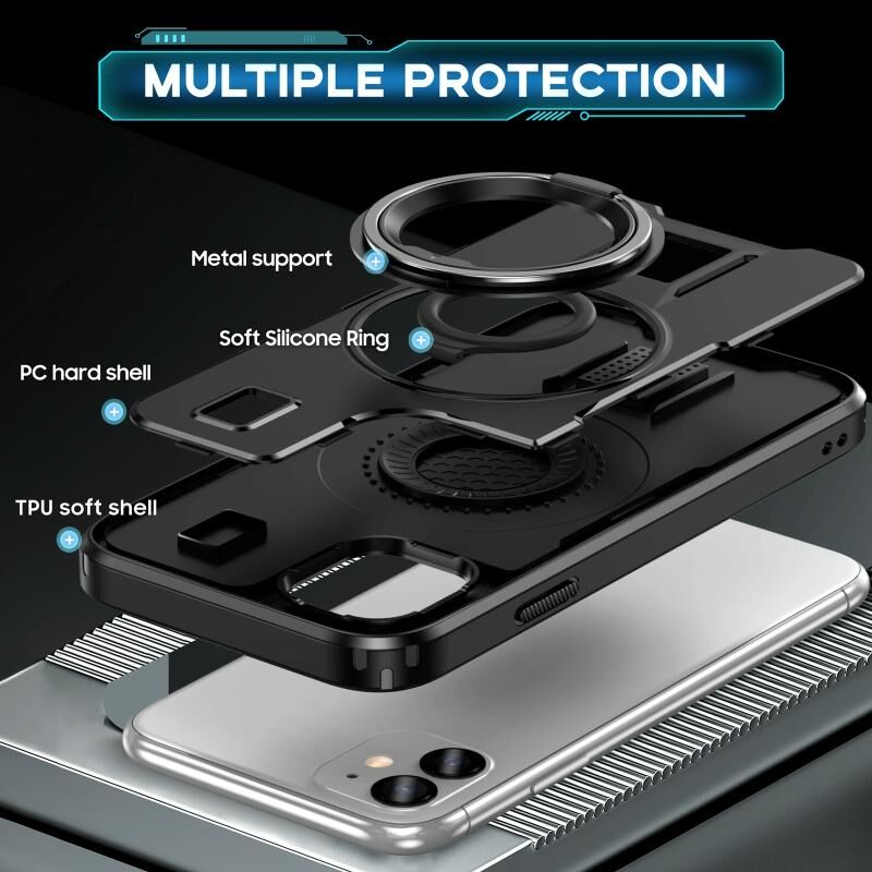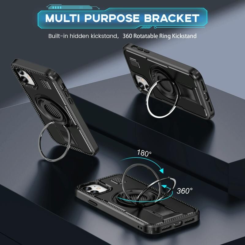 3. Δακτύλιος Σιλικόνης και Βάση: Δεν παρέχει μόνο βασική προστασία, αλλά η θήκη λειτουργεί και ως λαβή για να κρατάτε σταθερά το τηλέφωνό σας. Και ως βάση τηλεφώνου που επιτρέπει την κατακόρυφη ή οριζόντια λειτουργία σε πολλαπλές γωνίες.