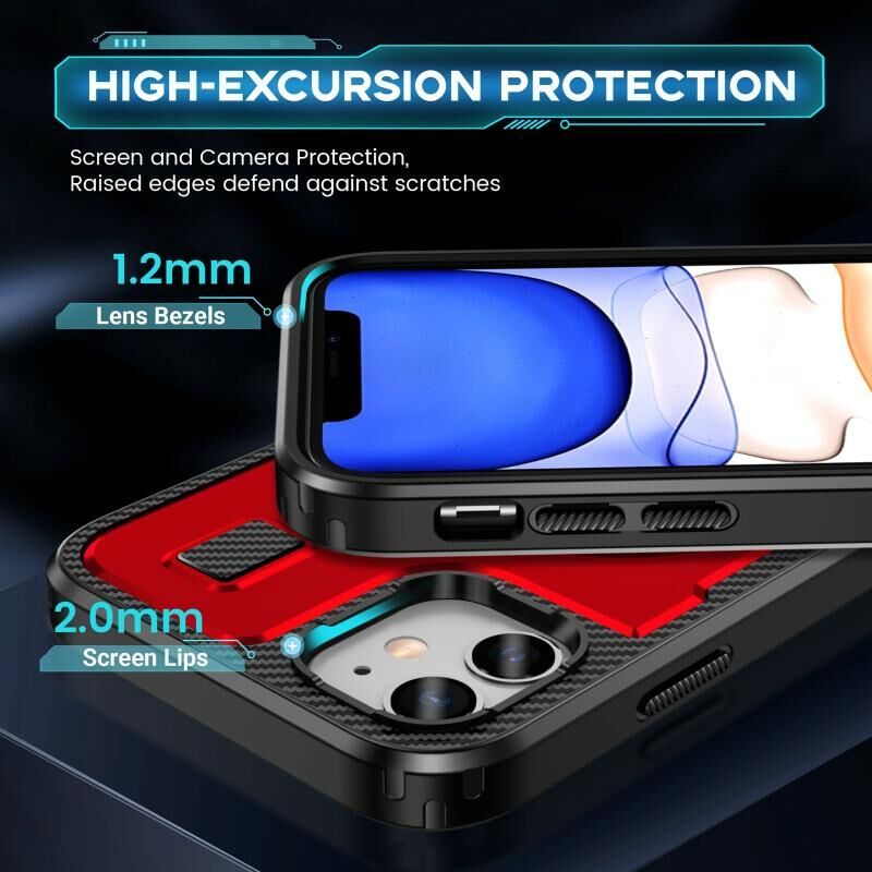 Θήκη για iPhone 11 με Δαχτυλίδι Στήριξης, Υβριδική από Πολυανθρακικό (PC) και Θερμοπλαστικό Πολυουρεθάνη (TPU) από Ίνα Άνθρακα (Κόκκινο)