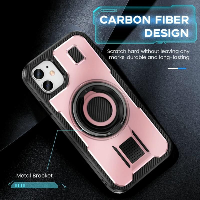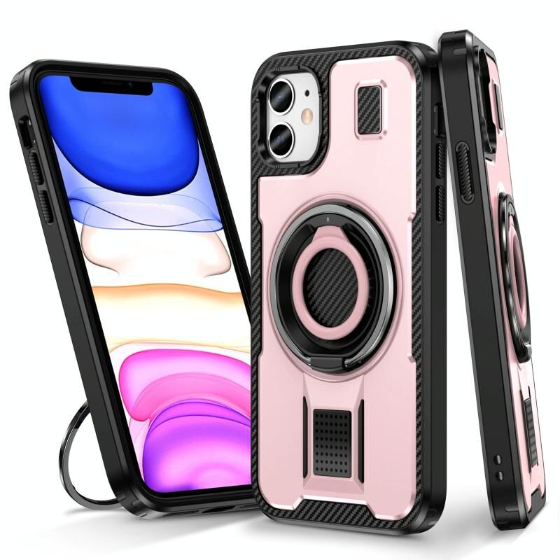 Θήκη για iPhone 11 με Δαχτυλίδι Στήριξης, Υβριδική από Πολυανθρακικό (PC) και Θερμοπλαστικό Πολυουρεθάνη (TPU) από Ίνα Άνθρακα (Μαύρο)