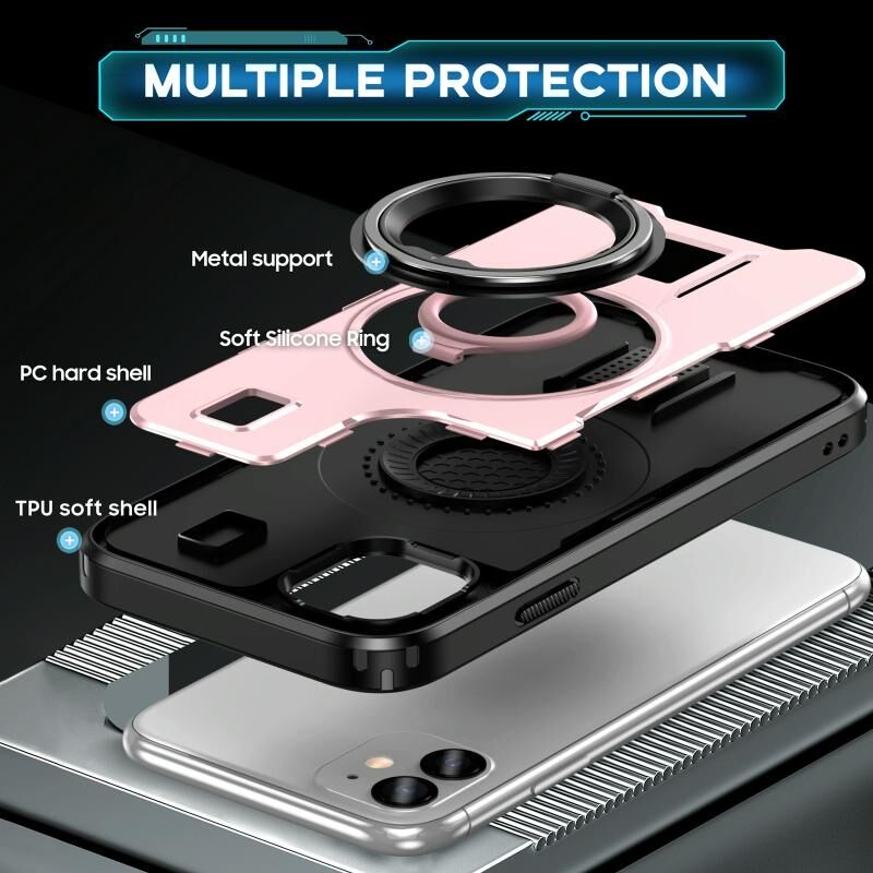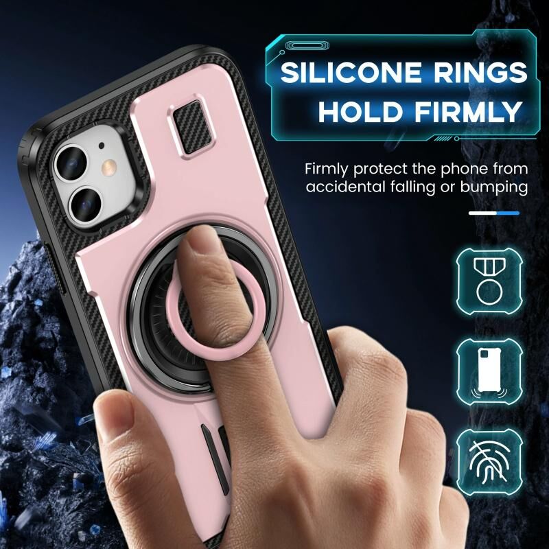 3. Δακτύλιος Σιλικόνης και Βάση: Δεν παρέχει μόνο βασική προστασία, αλλά η θήκη λειτουργεί και ως λαβή για να κρατάτε σταθερά το τηλέφωνό σας. Και ως βάση τηλεφώνου που επιτρέπει την κατακόρυφη ή οριζόντια λειτουργία σε πολλαπλές γωνίες.