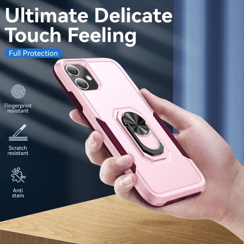 For iPhone 11 Ring Kickstand Heavy Duty Shockproof Phone Case (Pink)