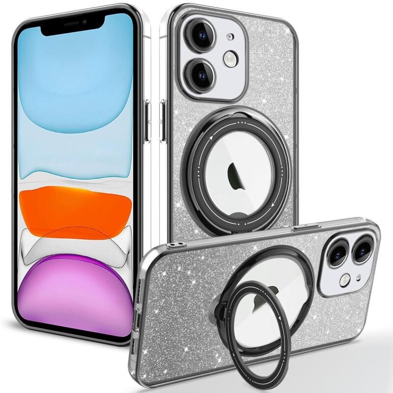 For iPhone 11 Rotation MagSafe Holder Gradient Glitter TPU Phone Case(Black)