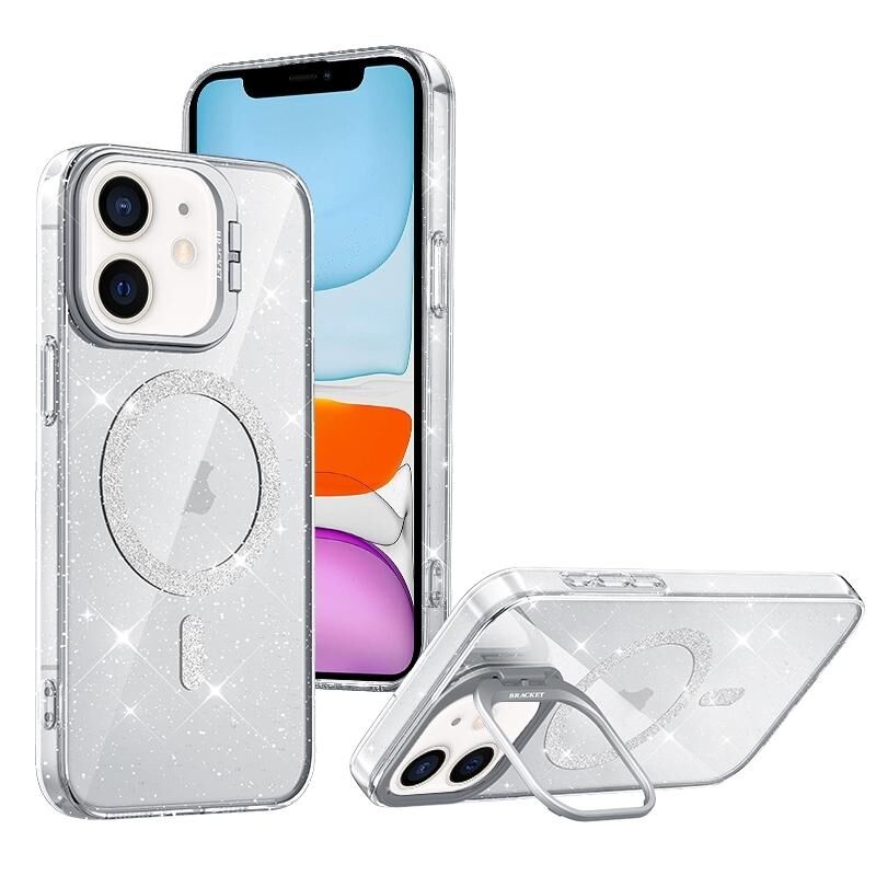 For iPhone 11 Shiny Shield MagSafe Lens Holder Phone Case(Silver)