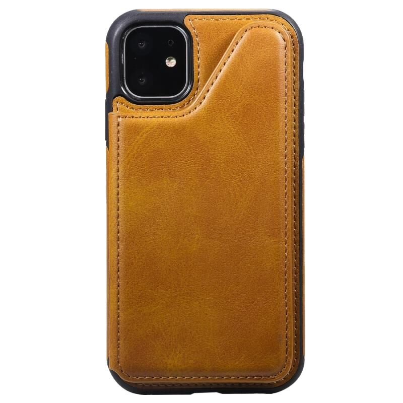 For iPhone 11 Shockproof Calf Texture Protective Case with Holder & Card Slots & Frame(Brown)